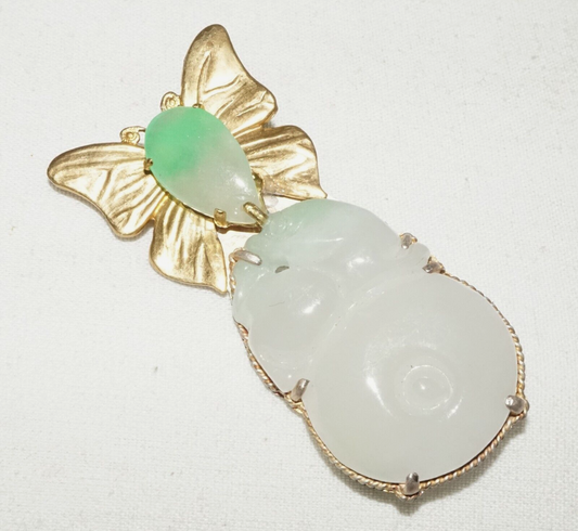 Vintage Chinese Fashion Jadeite Jade Butterfly Motif Brooch Pendant (LeP)