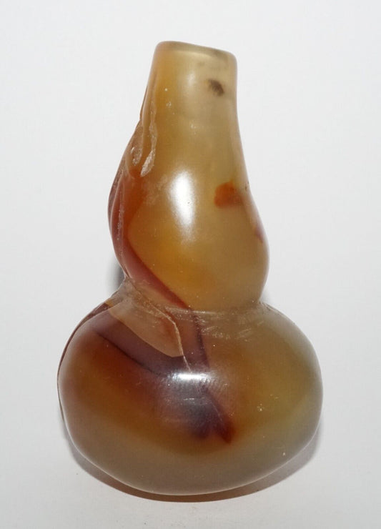 Vintage Chinese Double Gourd Motif Banded Shadow Agate Snuff Bottle (LeS) G16