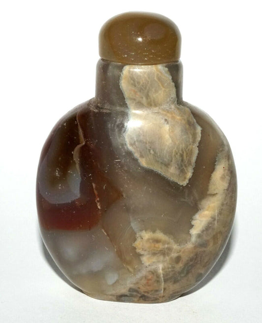 Vintage Chinese Grey & Red Agate Carved Snuff Bottle (LeS) G17