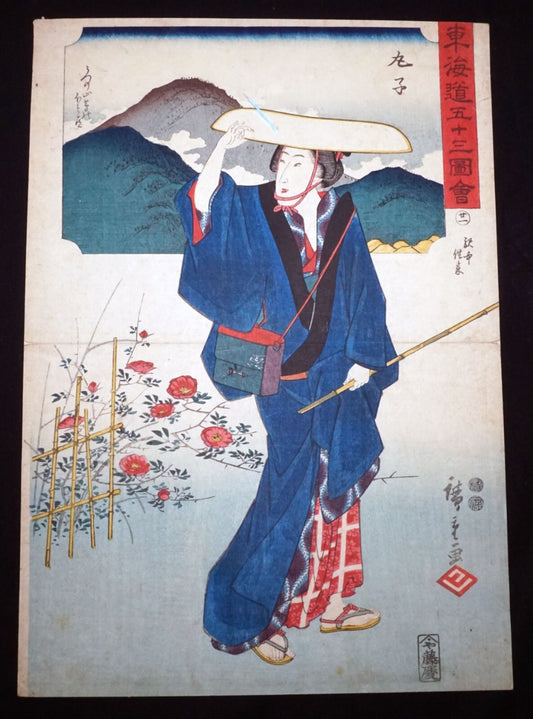 1850s Japanese Woodblock Print Beauty Tokaido Series Hiroshige Utagawa (KiL)12