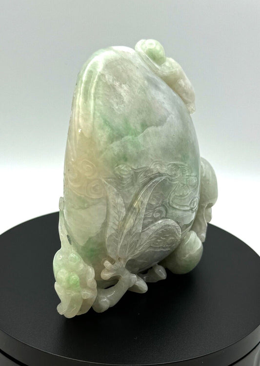 Vintage Chinese Off White Jadeite Carving a Peach w Playful Monkeys (InS)63