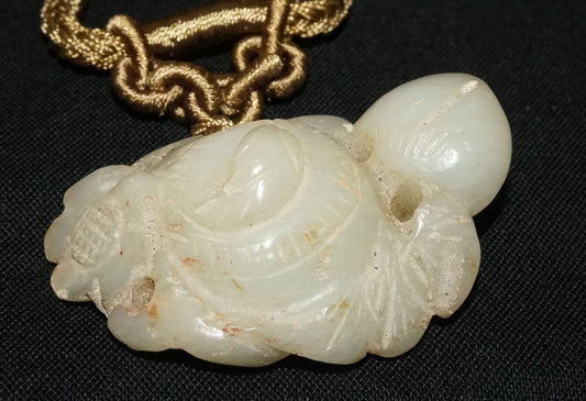 Vintage Chinese Nephrite Jade Carving w. Flower & Bud Motif on Necklace (Les)L21