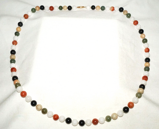Vintage Chinese Multicolor Jade Bead Necklace w. 14k Yellow Gold Clasp (InS)L6