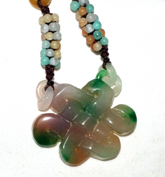 Vintage Chinese Multicolor Jade Endless knot Motif Carved Pendant (InS)#L4