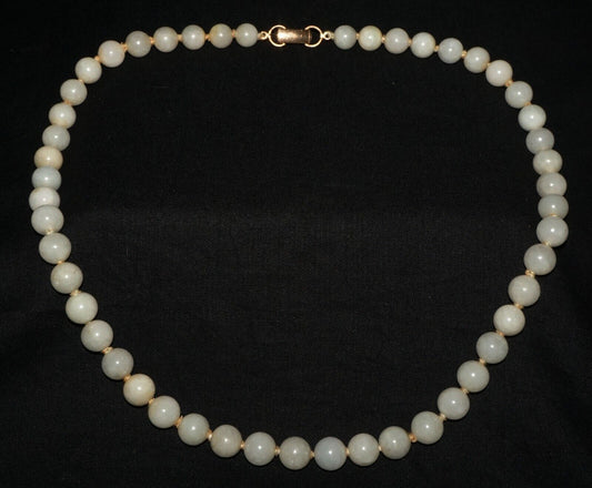 Vintage Chinese Off White Pale Green Jade Bead Necklace w. G. Plated Clasp (CoM)