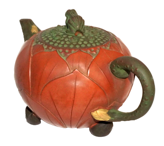 Vintage Chinese Pottery Mini Tea Pot Flower Bud & Frog Design (Kai) IC