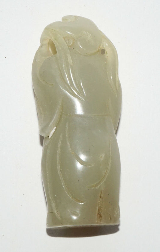 Vintage Chinese Pierced Nephrite Carved Standing Figure Holding Lingzhi (LeS) G3