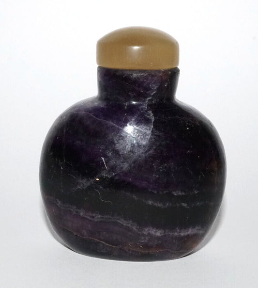 Vintage Chinese Purple Fluorite Carved Snuff Bottle w. Agate Stopper (LeS) G8