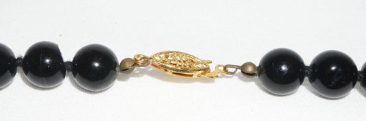 Vintage Chinese Onyx Bead Necklace 23" w. Gold Plated Clasp (BrM)