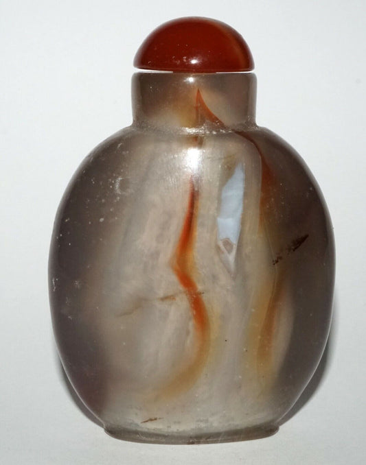 Vintage Chinese Polyhedroid Agate Snuff Bottle w. Red Agate Stopper (LeS) G4