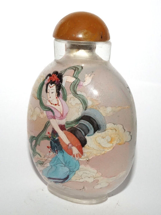 Vintage Chinese Reverse Painted Glass Snuff Bottle w Woman Motifs (LeS) G12