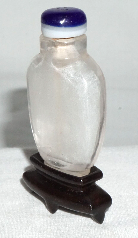 Vintage Chinese Quartz Crystal Carved Snuff Bottle w. Glass Stopper (LLA)