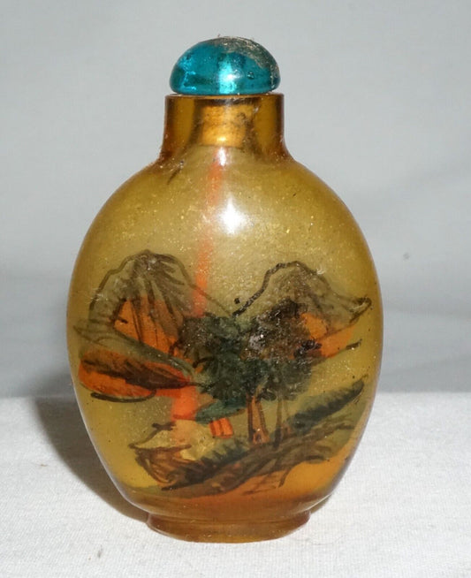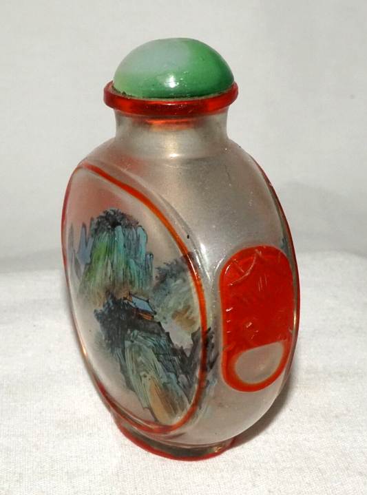 Vintage Chinese Reverse Painted Glass Snuff Bottle w. Landscape Motifs (LLA)