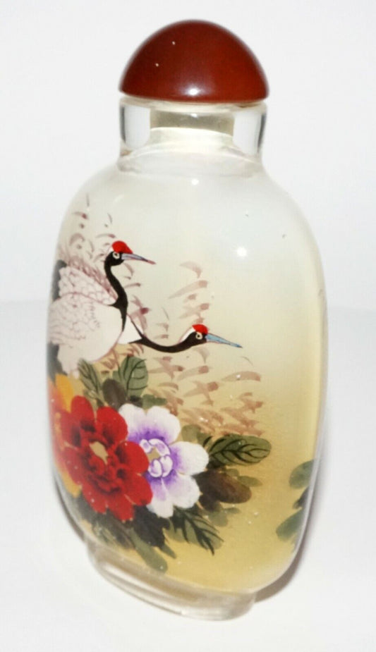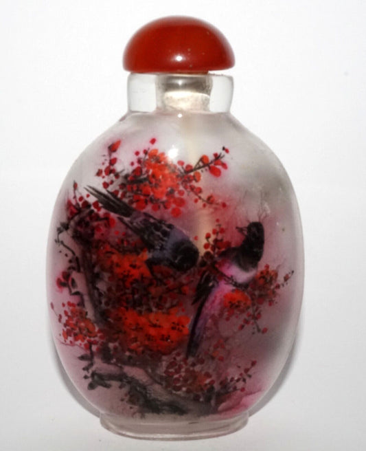 Vintage Chinese Reverse Painted Glass Snuff Bottle w. Birds & Flowers (LeS)