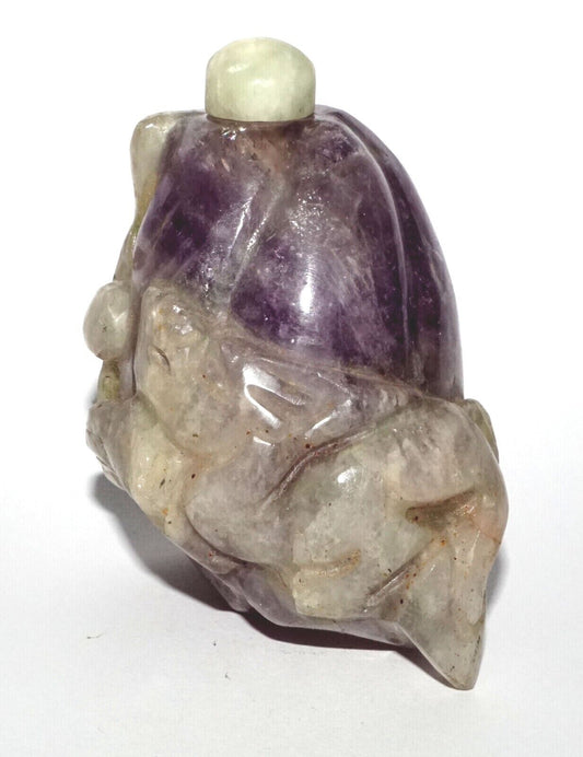 Vintage Chinese Purple Fluorite Carved Snuff Bottle w. Stone Stopper (LeS) G12