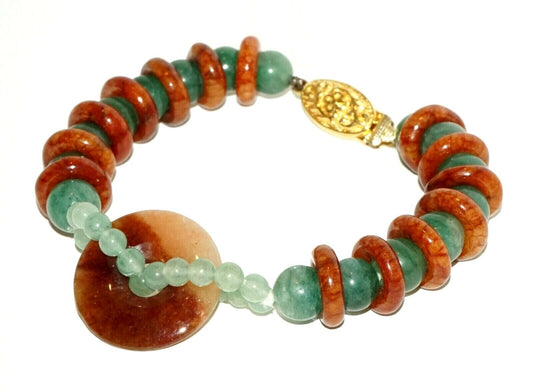 Vintage Chinese Red & Green Jadeite Jade Bead Bracelet w. Base Clasp (LeP)#13