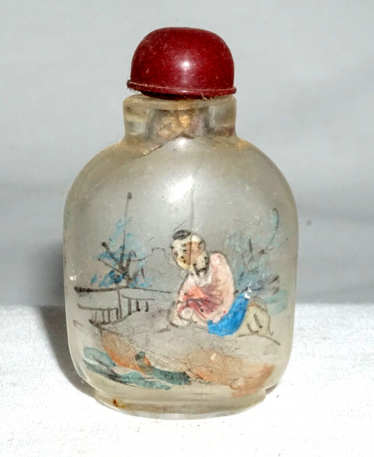 Vintage Chinese Reverse Painted Glass Snuff Bottle w. Figure Landscape (LLA) IC