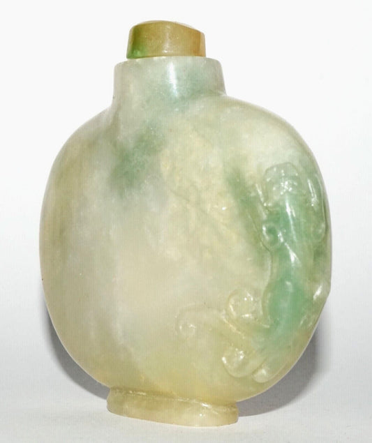 Vintage Chinese Semi Translucent Jadeite Jade Carved Snuff Bottle (LeS) G12
