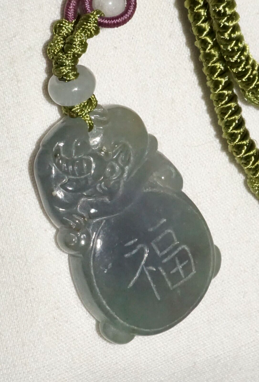 Vintage Chinese Semi Translucent Grey Blue Jade Pendant Dragon (InS)#L4