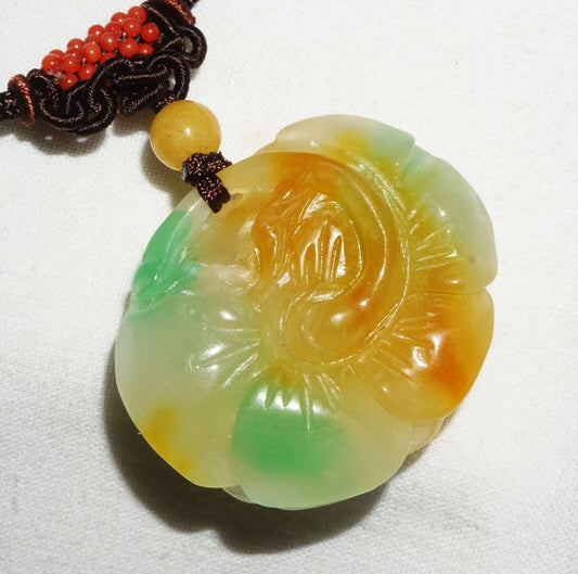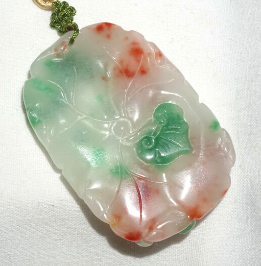 Vintage Chinese Semi Translucent Jadeite Jade Pendant w. Flower Motif (---)