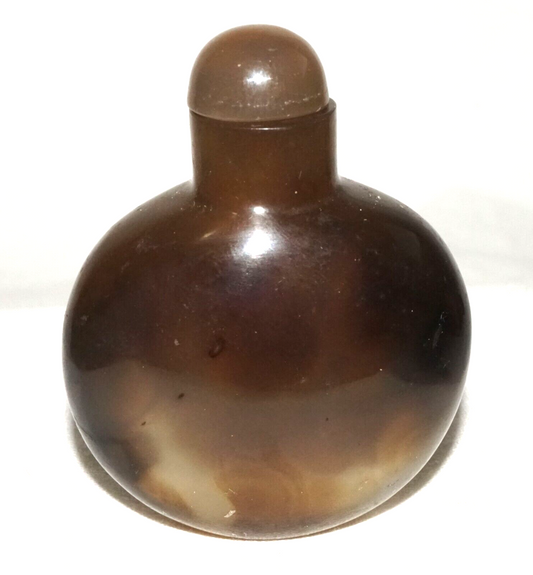 Vintage Chinese Shadow Agate Carved Snuff Bottle & Stopper (LeS)