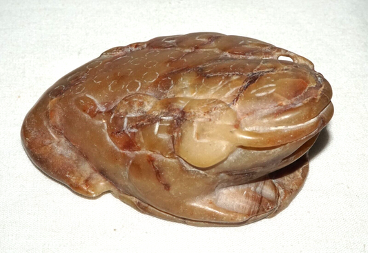 Vintage Chinese Soapstone Carving w. Toad Holding Coins on Coin Motif (LeS)L20