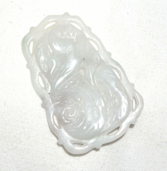Vintage Chinese White Jade Pierced Plaque Pendant w. Curvilinear Design (***)