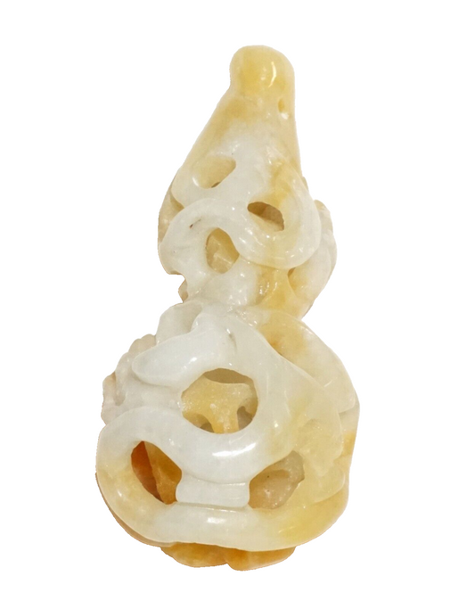Vintage Chinese White & Russet Jadeite Jade Double Gourd w. Ball in Ball (ChT)