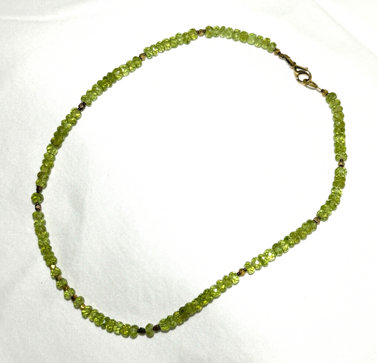 Vintage Faceted Green Peridot and Gold Tone Bead Necklace 15.5" (KiL)13