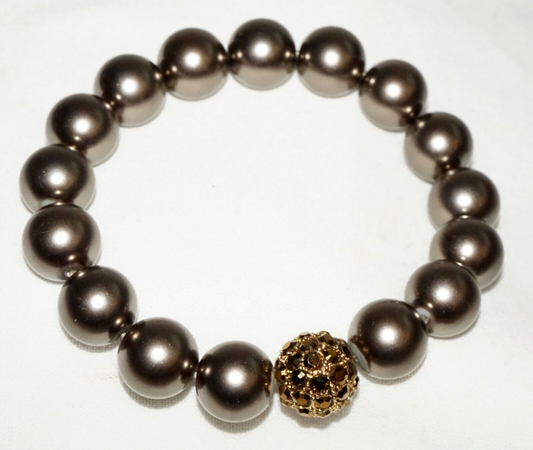 Vintage Fashion Bracelet w. Brown Metal Beads & Stone Studded Accent (KoS) L8