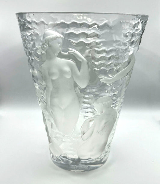 Vintage French Frosted Crystal Lalique Ondines Nudes Vase (AHB)