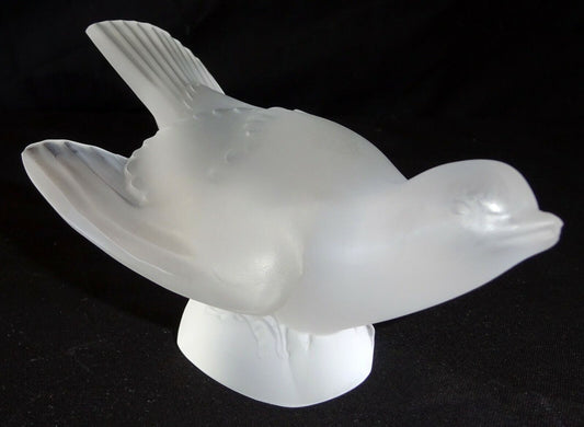 Vintage French Frosted Crystal Sparrow Wing Bird Sculpture by Lalique (MeG)