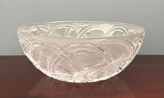 Vintage French Lalique Crystal Pinsons Finches Bird Bowl 9.25" (AHB)