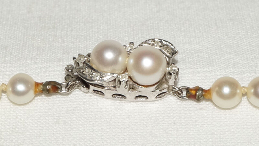 Vintage Graduated Single Strand Pearl Necklace w. 14k White Gold Clasp (FeD)#1