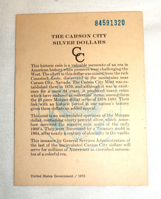 1884 Carson City GSA Morgan Silver Dollar with Box and COA ~ Uncirculated (TuD)