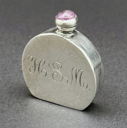 Vintage Mexican Sterling Travel Sz Perfume Bottle w Amethyst Accented Cap (MiM)