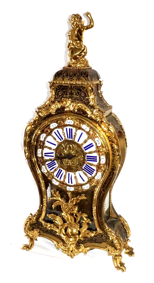 18C French Louis XV Wall Clock w Angel on Console sign Alexis Huau a Paris (JeP)