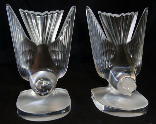 Vintage Pair French Frosted Crystal Dove Bookends Sculptures by Lalique (MeG)