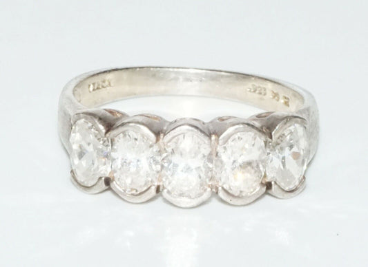Vintage Sterling Silver Ring Sz.8 set w. 5x Cubic Zirconia Accents (SaR)#429