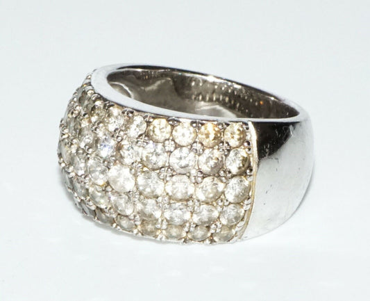 Vintage Sterling Silver Ring Sz.9 set w. 55x Cubic Zirconia Accents (SaR)#428