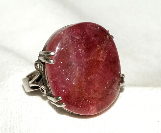 Vintage Sterling Silver Ring Sz.7 w. 1x Large Candy Colored Tourmaline (LeS)L19