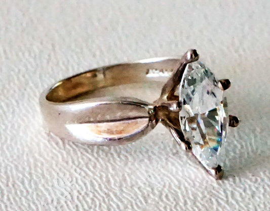 Vintage Sterling Silver Ring Sz.8 w. Giant Marquise Cut Cubic Zirconia (SaR) #27