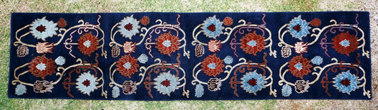 Vintage Tibetan Multi Color Floral Motif Rug Runner 150" x 28" Blue Ground (Sug)