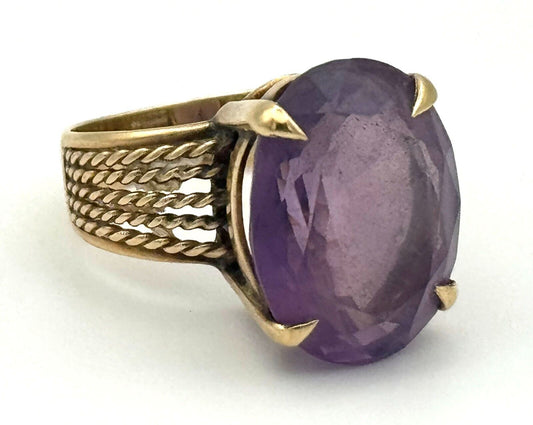 Vtg 14k Yellow Gold Ring Sz 7 w. Filigree & 1x Lg Amethyst Approx. 8.61 ct (TuC)