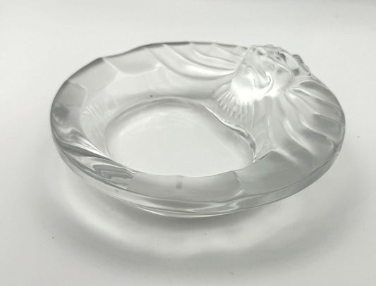 Vintage- French Lalique Crystal Lion Ashtray or Valet / Jewelry Dish