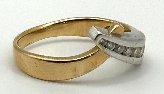Vtg 14k Yellow & White Gold Crossover Ring w Channel-Set Diamond Sz. 9.25 (NeW)