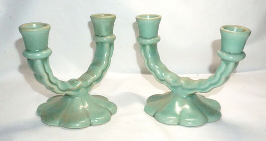 Vtg Pair Camark Pottery Light Aqua Teal Blue U-Shaped Dbl. Candleholders (NeW)