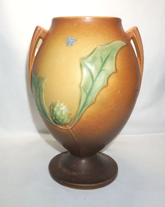 Vtg Roseville Thornapple Pottery Vase Pumpkin Orange Brown 2 Handle 820-9 (NeW)