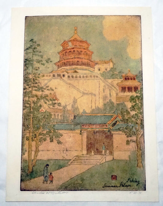 1923 UK Etching Print Peking Summer Palace Charles W. Bartlett (1860-1940)(InS)