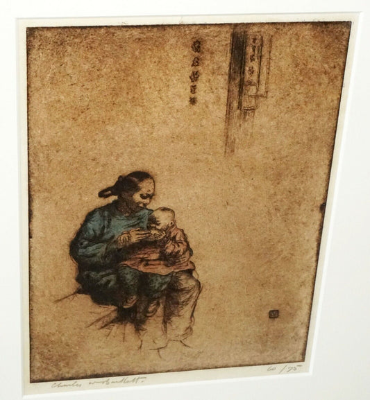 1923 Hawaii Colored Etching Chinese Mother & Child by Charles W. Bartlett (SRi)